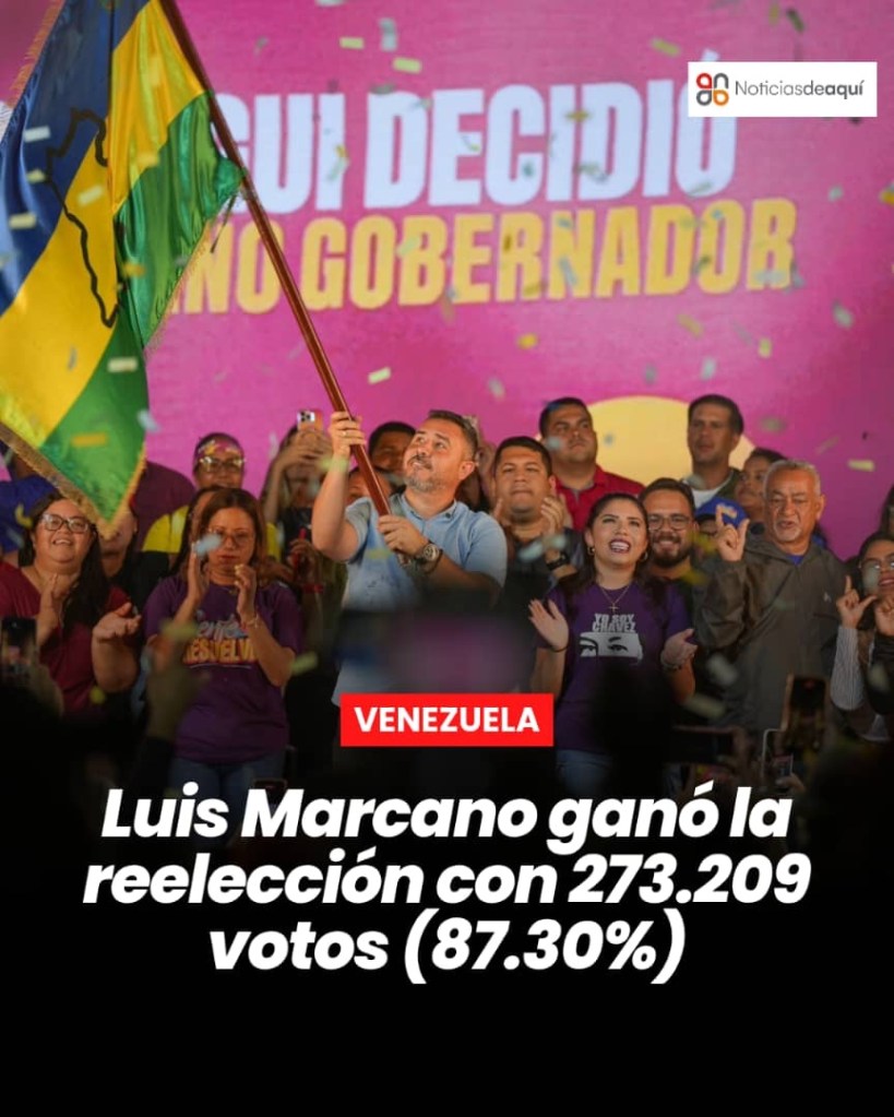 En Anzoátegui el gobernador Luis Marcano fue reelecto con 273.209 votos, lo que representa el 87,30% de los votos.