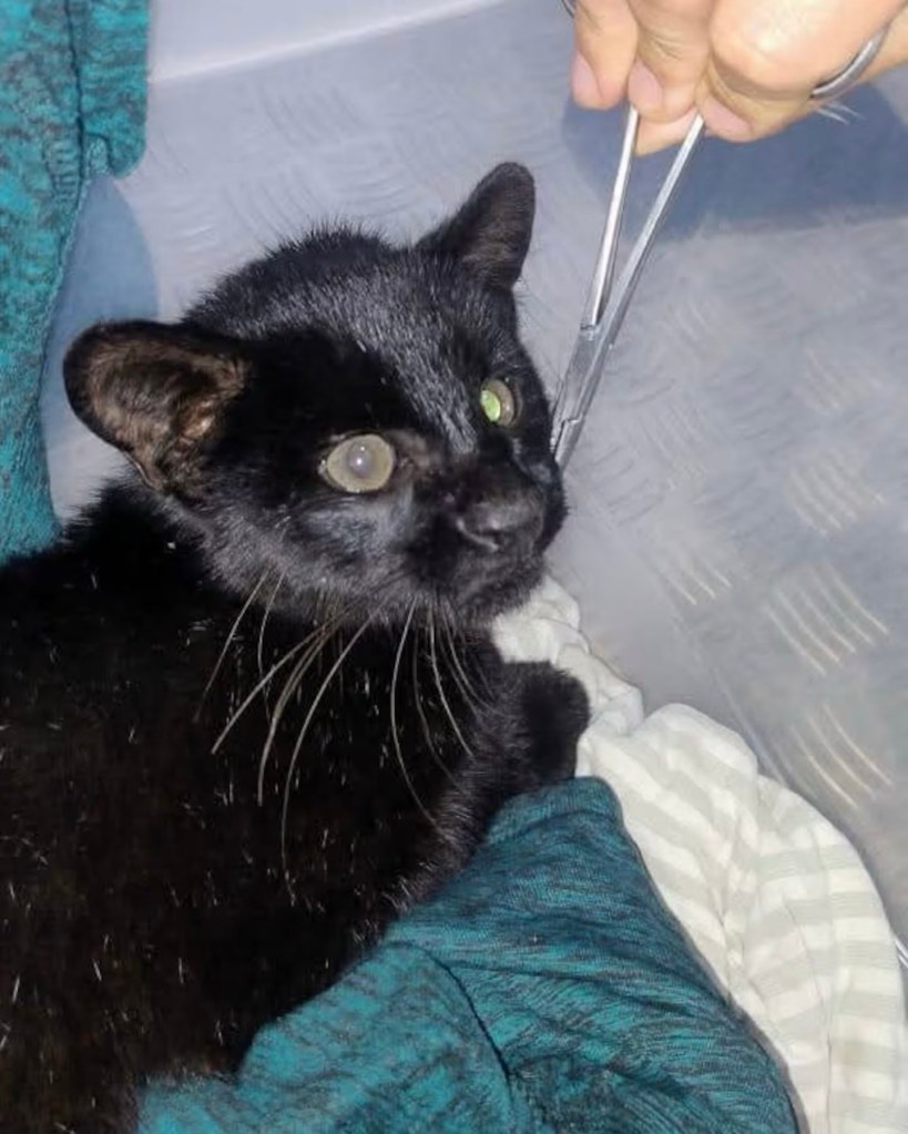 Estefanía llevó al animal a su casa con la intención de curarlo, ya que presentaba una pata inmóvil y signos de dolor. Aunque su marido le advirtió que el animal «no tenía cara de gato», ella inicialmente lo desestimó. Durante un par de días, cuidó y alimentó al felino, quien, sin embargo, se mostraba reacio al contacto humano.
