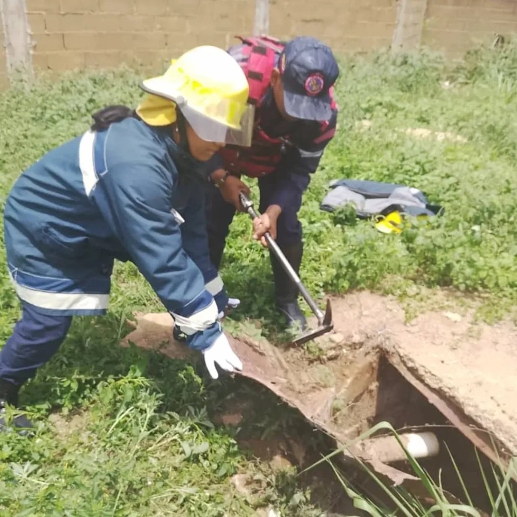 Utilizando una apertura adecuada para garantizar la seguridad del personal, los bomberos ingresaron al pozo y lograron extraer al perrito de forma exitosa.