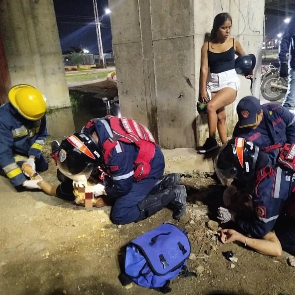 En un accidente ocurrido en la Redoma de los Pájaros, municipio Simón Bolívar, el Cuerpo de Bomberos atendió a dos personas que resultaron lesionadas tras la colisión de un vehículo tipo moto contra un objeto fijo. Las víctimas un hombre de 43 años, que presenta escoriaciones intercostales, y su acompañante, una mujer de 43 años, que sufrió una posible lesión frontal, así como fractura en tibia y peroné.