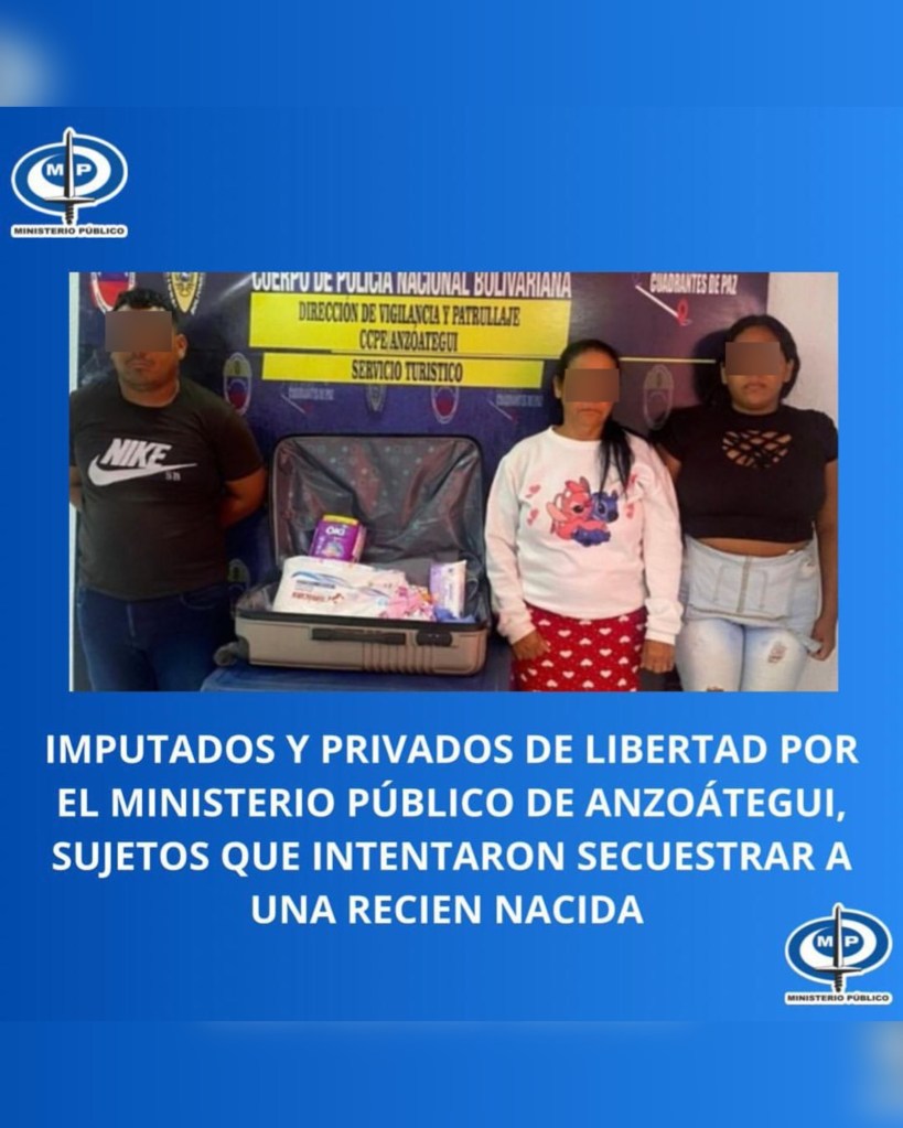 En la publicación del Ministerio Público, informaron que estos sujetos intentaron secuestrar a una recién nacida que se encontraba hospitalizada en el seguro social IVSS Dr. César Rodríguez en la ciudad de Puerto La Cruz.