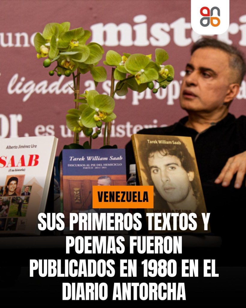 Es bueno resaltar que la Vida Literaria de Tarek William Saab celebra en el marco de la FILVEN 45 años de excepcional creación poética; ello desde que en 1980 aparecieran publicadas en el legendario Diario Antorcha de El Tigre ( Decano de la prensa en Oriente ) sus primeros textos y poemas los cuales posteriormente merecieron con la edición de sus libros importantes premios y reconocimientos en numerosos certámenes poéticos nacionales.