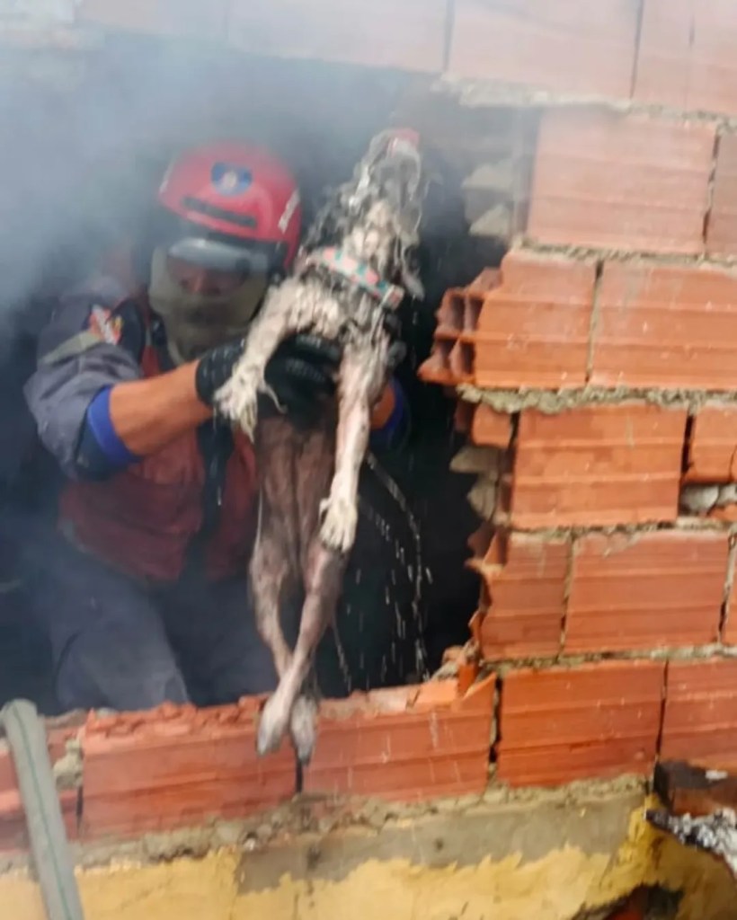 Rescataron un perro de un incendio que consumió una vivienda en Caracas