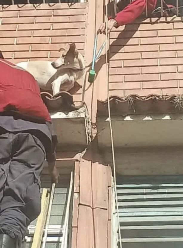 Rescataron a un perrito que estaba a punto de caerse de un tejado en La Rinconada
