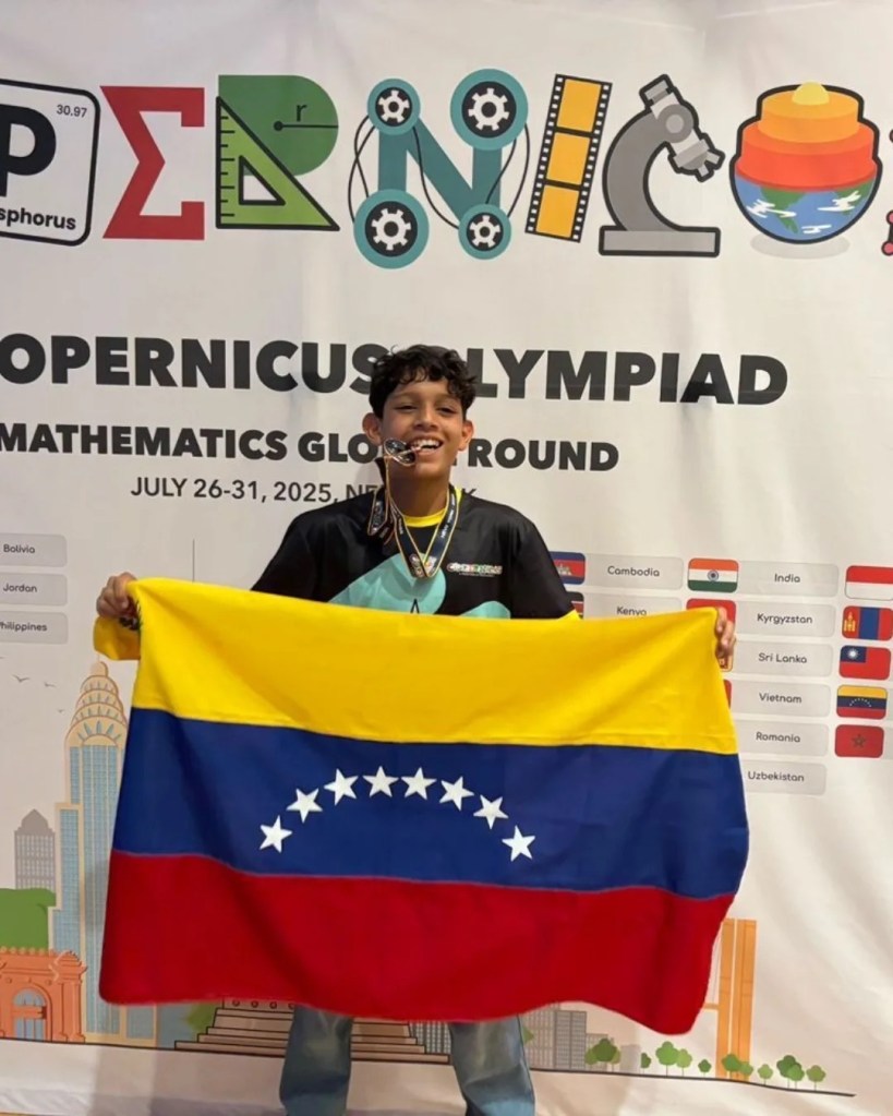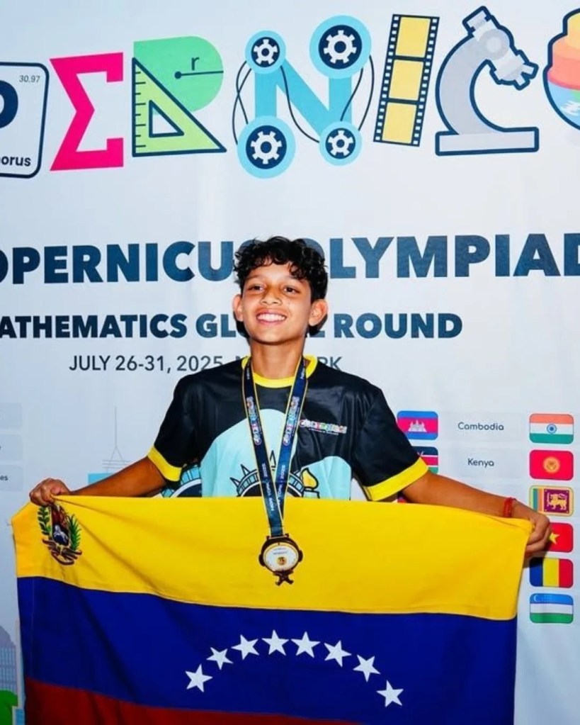 Jesús Urdaneta, un talentoso joven de 13 años originario de Ciudad Guayana, ha puesto el nombre de Venezuela en alto al obtener la medalla de bronce en la Ronda Global de las Olimpiadas Internacionales de Matemáticas Copernicus. La prestigiosa competencia se llevó a cabo el pasado miércoles 30 de julio en la ciudad de Nueva York, donde Urdaneta se midió con los mejores jóvenes matemáticos del mundo. Su logro es especialmente notable al ser el único representante de su país en el certamen.