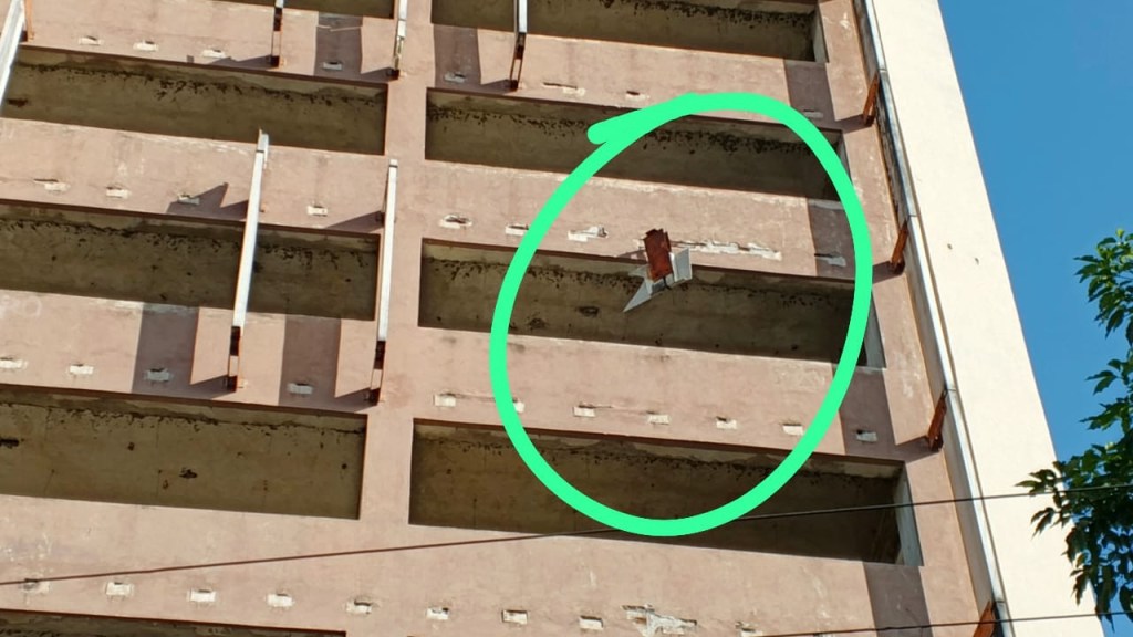 A través del WhatsApp de @noticiasdeaqui_ (0412-1218320) reportan el peligro recurrente que presenta una viga a punto de desplomarse en el edificio Fundeso ubicado en la Avenida 5 de Julio en Puerto la Cruz.