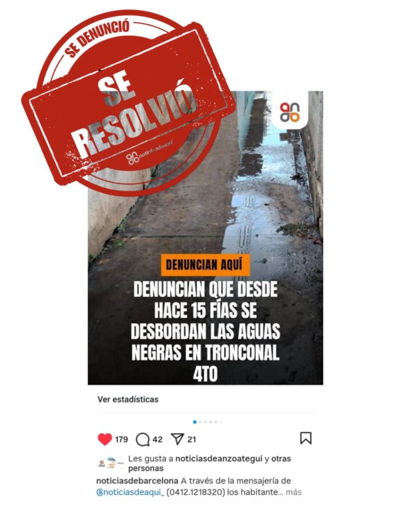 El pasado domingo los habitantes de Tronconal 4to denunciaron que tenían más de 15 días con problemas con las aguas servidas.