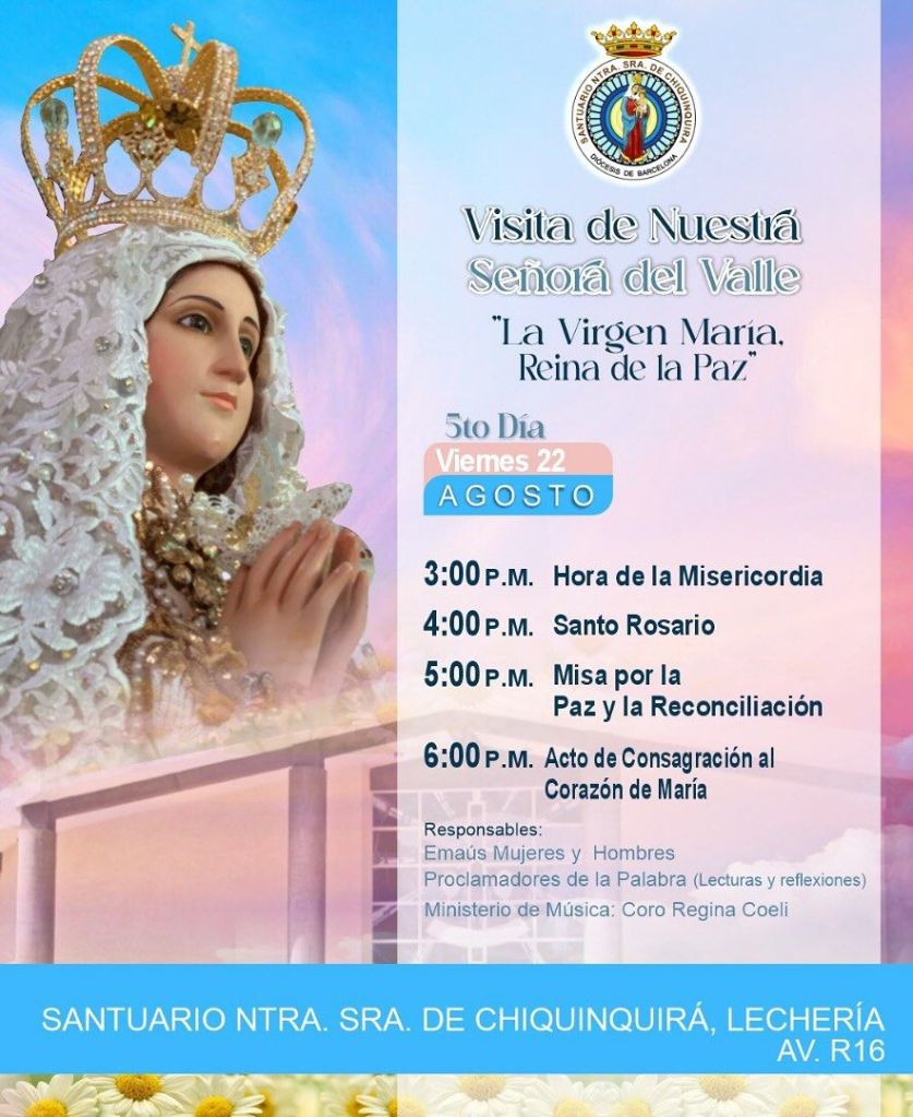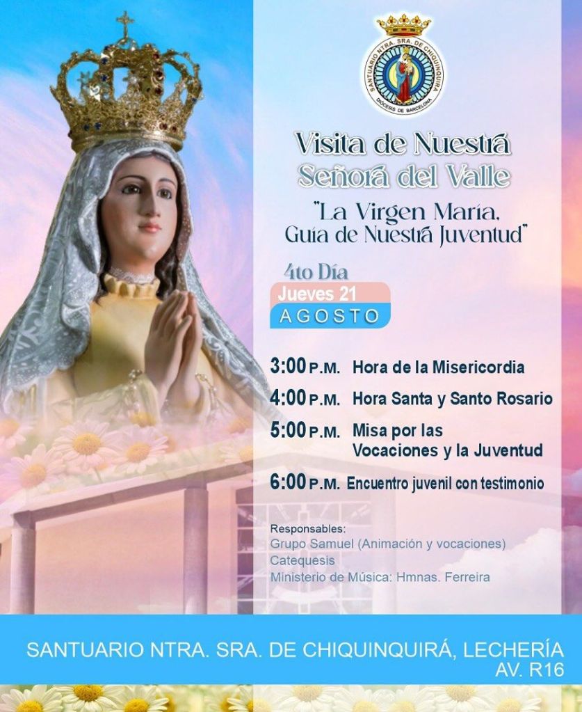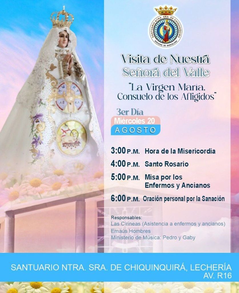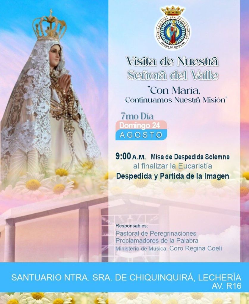 Posteriormente, la Virgen del Valle continuará su recorrido hacia la Iglesia Santo Domingo de Guzmán, donde sus devotos tendrán la oportunidad de compartir momentos de agradecimiento y realizar sus peticiones hasta el 30 de agosto.