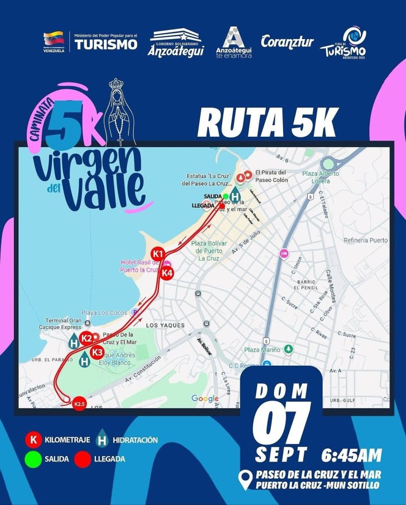 En el marco de la Feria Regional de Turismo Anzoátegui 2025, el gobierno regional organiza la Carera 5K y 10K en honor a la Virgen del Valle.