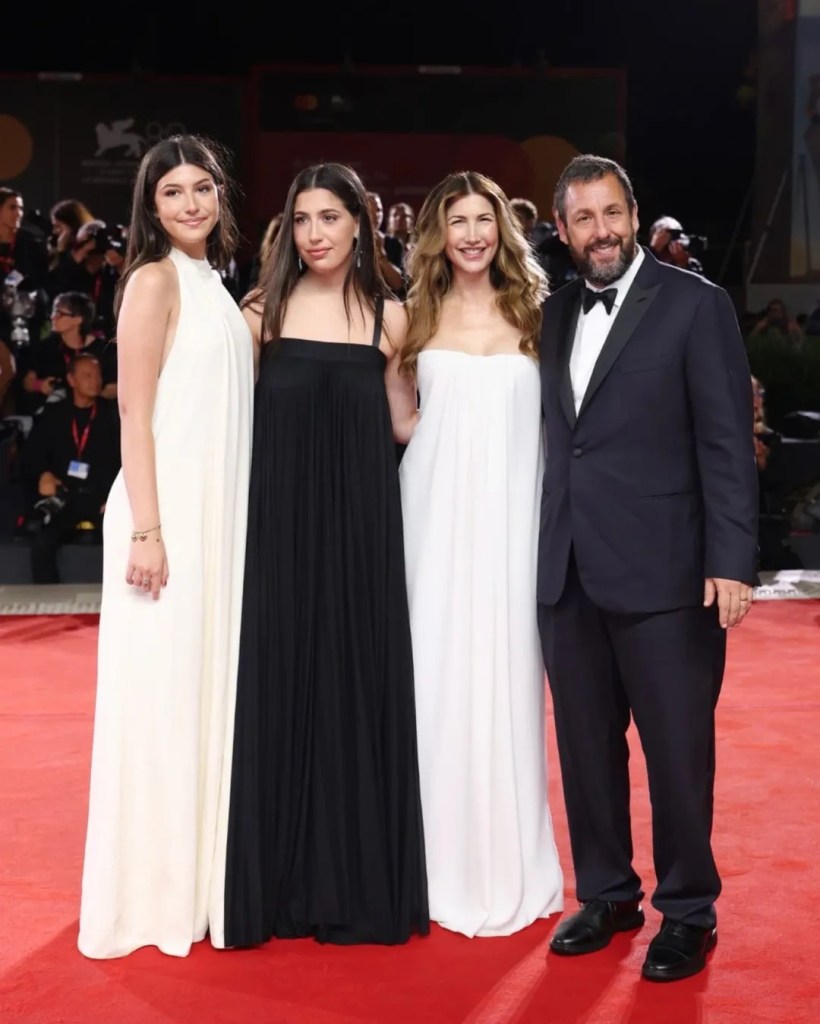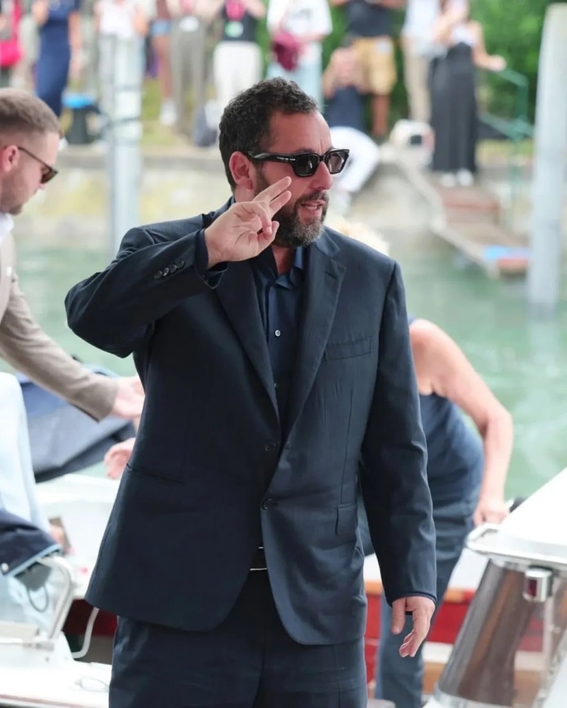 El reconocido actor de comedia, Adam Sandler, dejó a todos boquiabiertos durante la alfombra roja del Festival de Cine de Venecia 2025. Conocido por su característico estilo relajado y casual, Sandler rompió con todas las expectativas al presentarse en el estreno de su nueva película, «Jay Kelly», luciendo un impecable y elegante traje negro, acompañado de una camisa blanca y un moño, un atuendo que dista mucho de sus usuales camisetas holgadas y shorts.