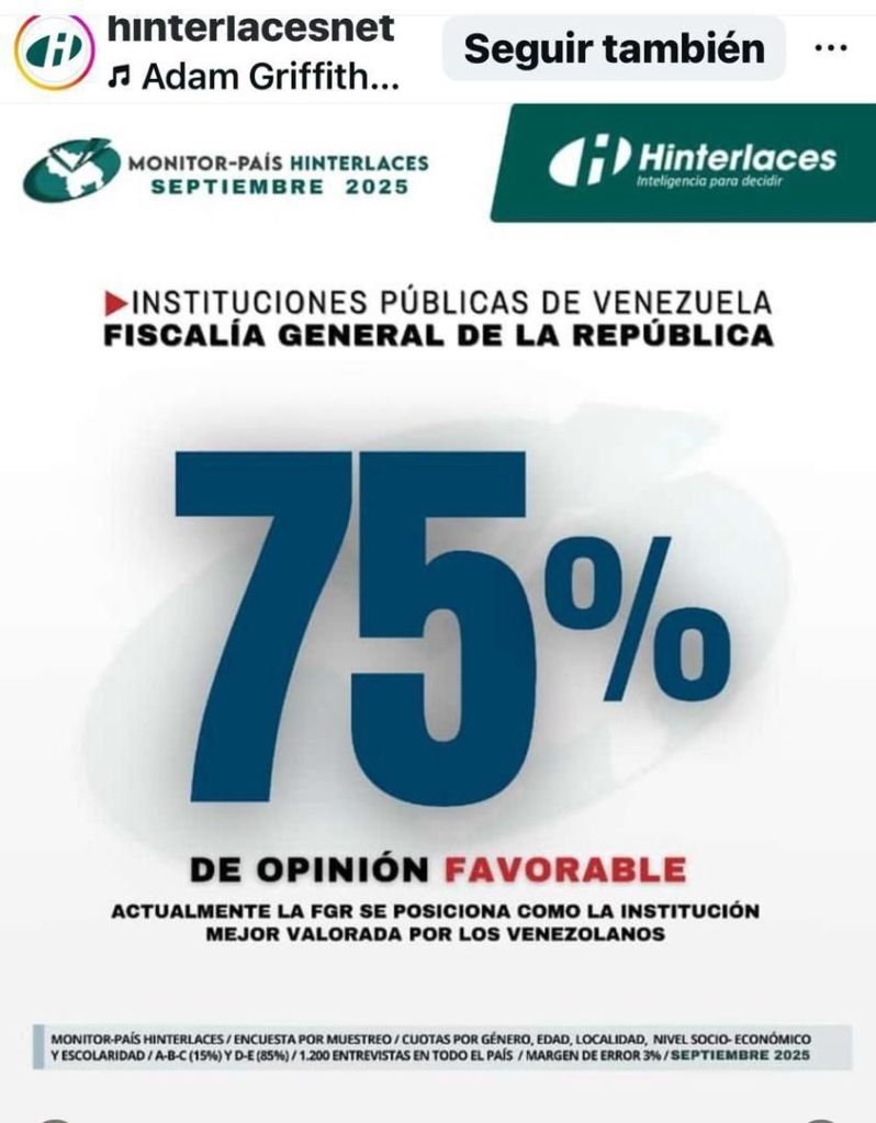 La empresa Hinterlaces dio a conocer en su reciente encuesta que la Fiscalía General de la República, es la institución mejor valorada por los venezolanos.