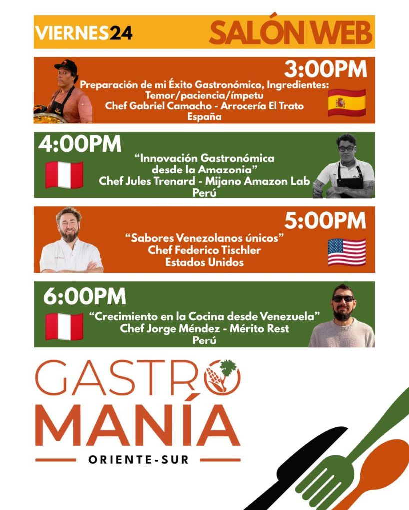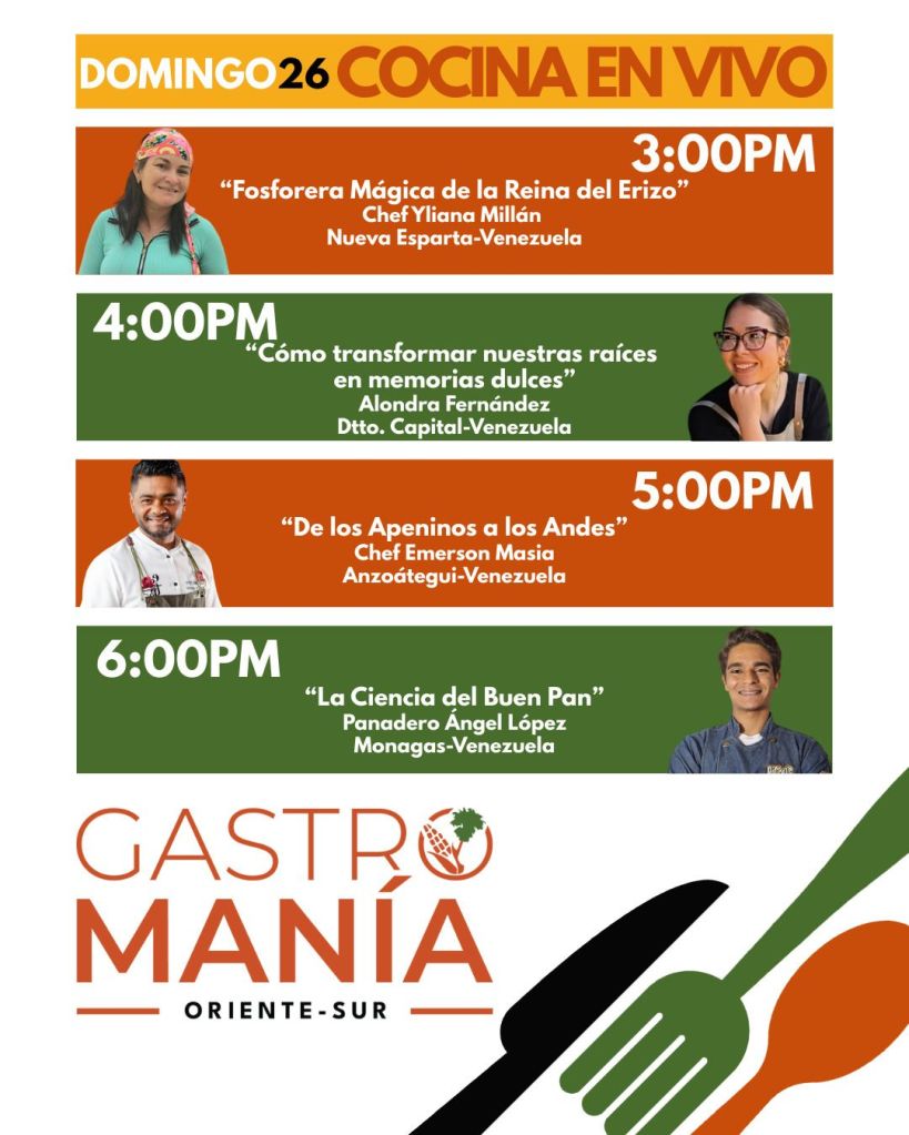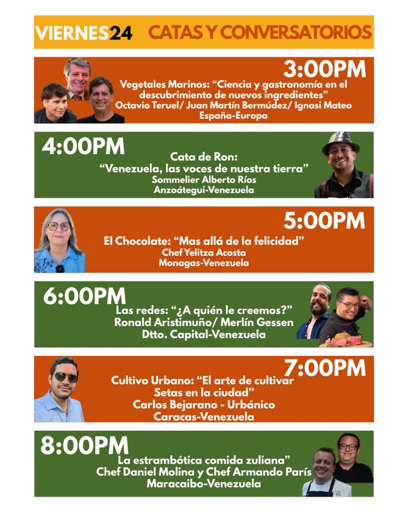 Durante la presentación, los organizadores ofrecieron un adelanto de las experiencias que vivirán los asistentes en Maturín, incluyendo: salas de cocina en vivo, con reconocidos chefs nacionales e internacionales, figurando nombres como el de Ricardo Chaneton, el primer venezolano con estrella Michelin, residenciado en Hong Kong, así como chefs de altura en países como España, Francia, Perú, Colombia, entre otros, catas y degustaciones, conversatorios sobre innovación gastronómica y turismo sostenible, actividades culturales y musicales para toda la familia, y espacios de networking para emprendedores y marcas del sector.
