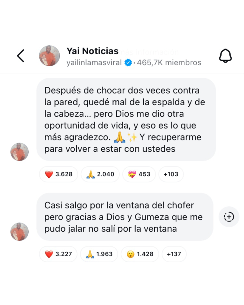 Agradecida y visiblemente afectada por la experiencia, Yailín la Más Viral compartió un mensaje de reflexión y fe con sus seguidores. «Gracias a Dios que me dio otra oportunidad de vida», manifestó la artista, subrayando el valor de seguir con vida tras el aterrador suceso.