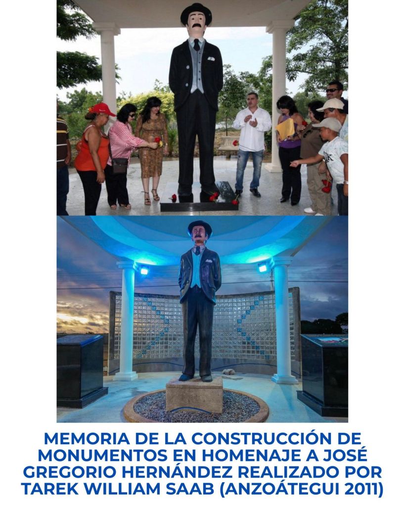 Tarek William Saab siendo gobernador de Anzoátegui construyó dos monumentos en honor al «Santo del Pueblo» José Gregorio Hernández hace 14 años en Anzoátegui donde Saab ya calificaba como «Santo del Pueblo» a José Gregorio.