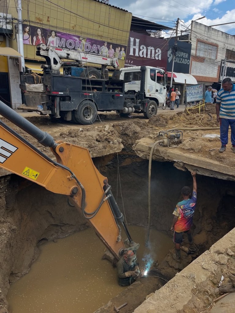 Los trabajadores de esta dependencia, adscrita a la Secretaria de Ciudades Humanas e Infraestructura, realizaron una excavación de más de 5 metros de profundidad para encontrar la fuga del vital líquido, y posteriormente hacer un encamisado de acero con soldadores capacitados, informaron a través de las redes sociales de la alcaldía del Municipio Simón Bolívar.