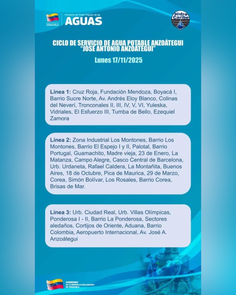 Habitantes de la urbanización José Antonio Anzoátegui, conocida como Villas Olímpicas en la zona sur de Barcelona, reportaron a través del WhatsApp de @noticiasdeaqui_ (0412.1218320), que llevan un mes continuo sin recibir el suministro de agua potable. La comunidad ha manifestado su preocupación, señalando que la ausencia prolongada del servicio ha creado una situación crítica que afecta el desarrollo de sus actividades diarias y la salubridad de los hogares.