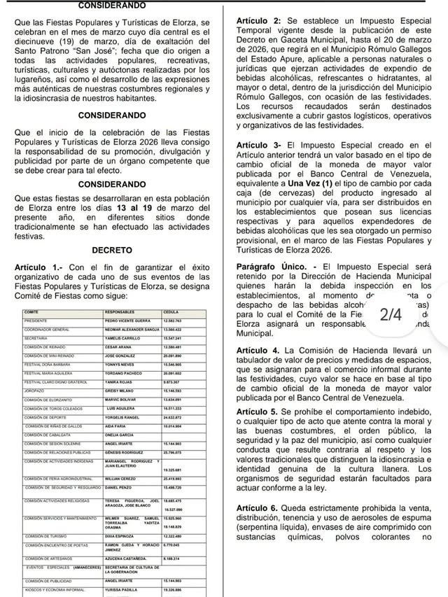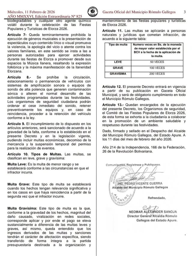 Dentro del marco de estas restricciones, queda terminantemente prohibida la venta, distribución y uso de espuma, así como la ejecución de géneros musicales o espectáculos que promuevan la violencia o afecten los valores familiares. En su lugar, el documento hace un llamado a promover y resaltar la música llanera como la máxima expresión folclórica del evento. Con esto, se busca que el ambiente festivo se mantenga fiel a sus raíces, evitando distracciones o conductas ajenas a la tradición regional.
