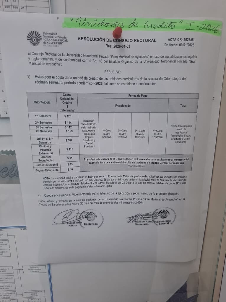 Detallaron que el primer semestre requiere 25 unidades de crédito y el costo está por unidad en $120.