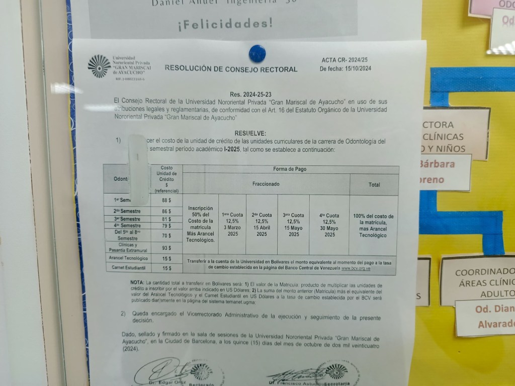 A través de nuestra mensajería de WhatsApp, estudiantes denuncian las precarias condiciones en las que se encuentran las instalaciones de la sede de odontología de la universidad Gran Mariscal de Ayacucho en Barcelona, aseguran que pagan aproximadamente $2500 por semestre y no es justificable las condiciones en las que se encuentra esa institución.