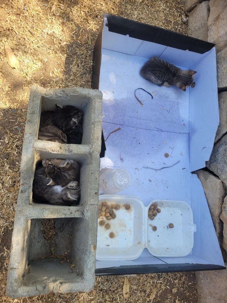 Cinco gatitos fueron abandonados recientemente en las adyacencias de la avenida Intercomunal de Barcelona, específicamente en el sector cercano a la Fundación Mendoza.