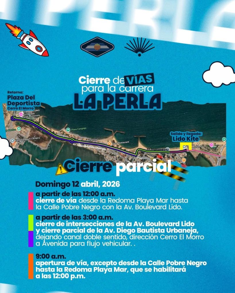 • 3:00 AM: Cierre de la intersección en la Av. Boulevard Lido y cierre parcial de la Av. Diego Bautista Urbaneja.