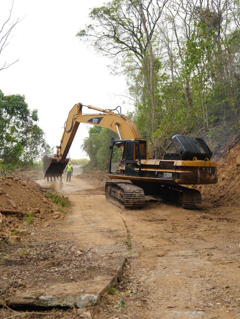 Paralelamente, un frente de maquinaria pesada se despliega en el territorio para la recuperación profunda de la vía: Jumbos, destinados al movimiento de tierra y adecuación de taludes, patrol para la nivelación y conformación técnica de la superficie, y vibrocompactador para la estabilización del terreno, lo que permitirá garantizar la durabilidad de la obra frente a las condiciones climáticas.